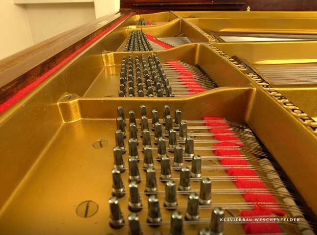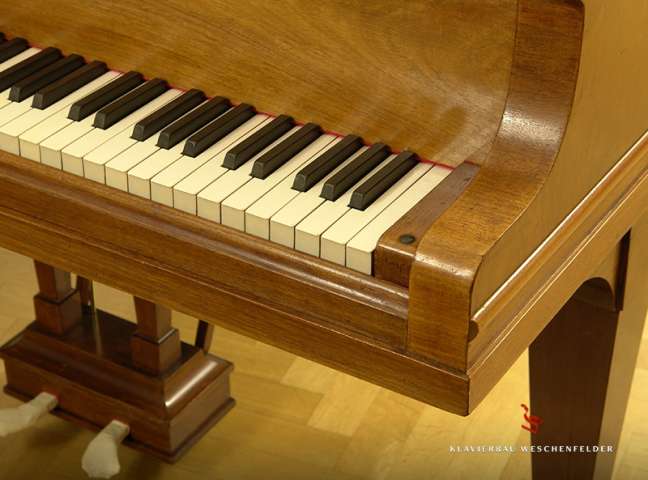 Das Instrument ist noch unrestauriert, lediglich dezent aufgearbeitet, spielbereit und gestimmt.
